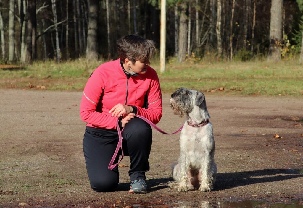 Tervehdyksen kajauttavat ilmoille pippuri-suolan väriset snautserit Sissi ja Peppi sekä remmipainonsa Mari. Sissi on kymmenvuotiaana jo uransa jäähdyttelyvaiheessa (samoin kuin emäntänsä), mutta Peppi 7 kk ikäisenä vasta aloittelee harrastuspolkuaan. Koirien kanssa olen puuhaillut isoimman osan elämästäni, aiemmin rotuna oli kääpiösnautseri, joiden kanssa harrastimme agilityä.